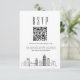 Une carte de code rsvp QR minimaliste de mariage avec un skyline stylisé représentant la belle ville de Charlotte. Remplacez le code QR par un lien vers votre site Web pour faciliter la réponse à votre événement mariage pour vos futurs invités.