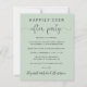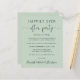 Un salon vert sage et économique ou une faire-part de mariage privée et une réception ou fête de fête. L'avant présente "Happily Ever After Party" dans une simple typographie et un script élégant avec des swashes. Personnalisez votre faire-part et votre invitation de manière plus détaillée et ajoutez vos noms dans un script de type signature. Au contraire, entrez l'adresse URL de votre site Web mariage pour créer un code QR que les invités peuvent scanner pour voir vos photos mariages, tous les détails et à RSVP en ligne, et ajoutez vos prénoms et vos dates de mariage et de réception.