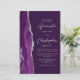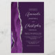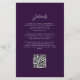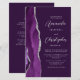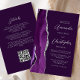Le bord gauche de ce carton d'invitation de mariage moderne et élégant présente une bordure d'agate aquarelle violette agrémentée de faux strass argentés. Le texte personnalisable combine une écriture argent gris et des polices sans empattement sur fond violet. Le verso offre un espace pour les détails du mariage sur un fond violet uni, ainsi qu'un code QR que les invités peuvent scanner pour visiter votre site web et répondre, ce qui permet d'économiser le coût d'impression et d'envoi de cartes de réponse séparées.