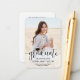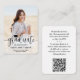 Partagez la joie d'un baccalauréat ou d'un collège avec d'élégantes cartes d'enceinte faire-part. Ces inserts sont de petite taille mais grands sur la simplicité stylisée. Avec une photo et un code QR personnalisé, ces cartes annoncent la réussite du diplômé et fournissent tous les détails supplémentaires par l'intermédiaire d'un site Web de votre choix, d'une page de médias sociaux, d'une faire-part numérique, d'une invitation à la fête ou d'un album photo. Selon la façon dont il est configuré, le lien peut fournir un endroit pour les amis et la famille pour poster une note en ligne, donner un cadeau d'application de paiement, ou voir plus d'informations, comme les détails de la fête et rsvp. La petite taille de carte de visite de 3,5 po x 2,5 po rend ces inserts faciles à inclure avec les annonces de graduation ou à distribuer à la famille et aux amis (ils ne sont pas fournis avec des enveloppes.) Vendus en forfaits à un prix abordable, ils sont une option chic pour aider à rester dans un budget raisonnable. Le design moderne en noir et blanc présente une calligraphie manuscrite avec un casquette en carton de mortier, une typographie classique élégante, et une photo de votre choix, comme une image ou une image de haut niveau de la cérémonie de début. L'image et le libellé de ce modèle sont simples à personnaliser et les couleurs sont faciles à changer à l'aide de l'outil de design Zazzle. Cette carte de remise de diplômes est une façon unique d'annoncer une fête spéciale. Félicitations au diplômé !