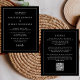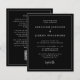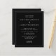 Cette faire-part de mariage moderne simple et minimaliste comporte une police serif blanche classique sur un arrière - plan noir, avec des mots et des phrases sélectionnés dans la calligraphie d'écriture manuscrite stylisée. Une fine ligne blanche fournit un cadre rectangulaire pour le texte. Au verso, ajoutez les détails de votre mariage et un code QR que vos invités peuvent scanner pour visiter votre site mariage. REMARQUE : Les enveloppes ne sont pas automatiquement incluses dans ces invitations budgétaires, alors n'oubliez pas de choisir l'option "enveloppes blanches" !