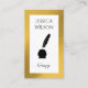Cet élégant design carte de visite dispose d'un cadre métallique en or sophistiqué avec un délicat accent de plumes, rehaussé par une image vectorielle d'une quill et son inkwell complétant parfaitement un code QR pour un accès facile à vos services notaires. L'agencement élégant et professionnel donne une impression durable, alliant le charme classique et le confort moderne. La plume et son inkwell font de ce design de luxe idéal aussi pour les écrivains ou écrivains indépendants pour promouvoir leur activité.