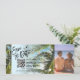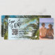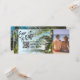 Destination Mariage sur la Plage Billet de Carte d'embarquement en Or Enregistrer la Date avec cœur et icône d'avion avec une simple carte du monde en ligne artistique minimaliste et fond de plage de palmiers