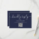 Une simple et élégante carte de réponse RSVP bleu marine avec code QR, conçue par Thisisnotme©