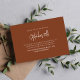 Capturez l'esprit de la saison avec cette carte RSVP mariage de automne aux tons bordeaux, parfaite pour un mariage d'automne. Doté d'un code QR moderne pour des réponses en ligne rapides, cette élégante carte de réponse d'invité en aquarelle permet de répondre sans effort aux clients. Conçu comme une carte de réponse mariage avec un script de calligraphie intemporel, il allie style classique et commodité. Une belle façon de compléter votre suite papeterie tout en gardant votre planification sans stress.