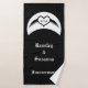 Cette superbe serviette de bain dispose d'un beau coeur gothique noir avec des ailes corbeaux de chaque côté. Le milieu du coeur a du texte personnalisé à l'intérieur pour que vous puissiez inclure les initiales du couple heureux. Il y a plus de texte personnalisé pour que vous puissiez inclure les noms du couple heureux et un message.