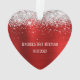 Créez votre propre ornement acrylique en forme de coeur rouge bat mitzvah pour votre fille. Vous pouvez customiser le style de police moderne "NAME Bat mitzvah", ou augmenter la taille de police pour les noms plus courts. L'arrière - plan de l'art numérique présente une parties scintillant fausse argentée et une feuille brillante rouge sombre. À l'arrière, vous pouvez ajouter une photo de famille si vous le souhaitez. Fille 12ème ou ornement d'anniversaire pour elle.