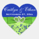 Cœur Bleu, Flore verte, Coeurs Mariage Favor Sticker