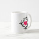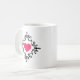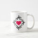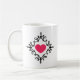 Le design présente un coeur rose à l'intérieur d'un cadre fleuri noir.