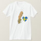 Un drapeau suédois en forme de coeur est placé à côté d'une carte de soulagement de la Suède sur ce T-shirt distinctif patriotique.