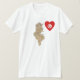 Un drapeau tunisien en forme de coeur est placé à côté d'une carte de soulagement de la Tunisie sur ce T-shirt distinctif patriotique.