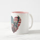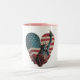La tasse "Coeur de la Liberté" présente une image symbolique frappante centrée autour d'une forme de coeur audacieuse qui rayonne de patriotisme et de liberté. Le coeur est rempli d'un motif de drapeau américain, mêlant les étoiles et les rayures avec des tons vifs rouge, blanc et bleu. Le design est accentué de subtiles textures en détresse, lui donnant une sensation vintage et intemporelle. Autour du coeur, il y a des tourbillons et des fioritures élégants, symbolisant l'unité et la force. L'esthétique générale est à la fois inspirante et élégante, ce mug rendant un hommage parfait à la liberté et à la fierté américaines.