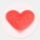 Design mignon avec un coeur de bonbons gummy avec "love" écrit sur lui dans les tons rouge et rose sur un arrière - plan rose. Sticker avec un design personnalisable pour vous de personnaliser avec votre propre texte, photos et idées. Créé à l'aide d'une photographie originale et de techniques numériques de Jess Perry.