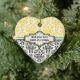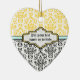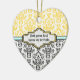 Cœur En Céramique Motif Damas noir blanc jaune aqua ornement