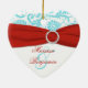 ****VEUILLEZ NOTER que le ruban et les bijoux sont des images imprimées et ne sont pas réels. Cet ornement bleu aqua, blanc et rouge damassé correspond à la collection mariage montrée ci-dessous, et ferait un joli souvenir de votre journée spéciale, ou un grand cadeau pour les jeunes mariés.