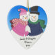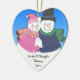 Cet ornement en forme de coeur adorable pour des nouveaux mariés, des couples et des ménages mariés comporte un bonhomme de neige et une neige-fille se blottissant étroitement dans l'amour. Sur le fond du coeur de porcelaine il y a pièce d'ajouter vos noms et de commémorer l'année. Perfectionnez pour des couples célébrant leur premier Noël ensemble. Fait un souvenir merveilleux de l'année spéciale que vous avez passée ensemble.