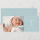 faire-part de naissance photo bleu "Coeur". Personnalisez ce joli et moderne modèle carte photo avec la photo de votre bébé garçon et les détails pour une faire-part de naissance unique.
