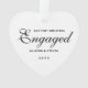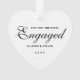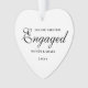 Personnalisé 1er Noël Fiançailles Heart Ornament fait une idée cadeau souvenir parfaite. Les deux côtés de l'ornement en forme de coeur sont conçus avec un arrière - plan blanc. Le texte élégant est "notre premier Noël engagé" dans une police noire simple et moderne et écriture manuscrite. Les noms de l'année et du couple sont en bas. Cliquez sur l'option Personnaliser le modèle et entrez les noms et l'année.