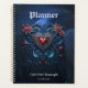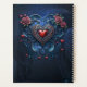 Coeur gothique, aménagé avec soin, avec des motifs complexes et des décorations élégantes. Le coeur respire une obscurité romantique, symbolisant l'amour éternel du couple. Deux corbeaux stylisés sont incorporés à l'arrière - plan, presque comme s'ils se mélangent à la teinte bleu profond. Leurs silhouettes sont élégantes et mystérieuses, ajoutant une dimension supplémentaire au design. Les corbeaux pourraient être légèrement inclinés, comme s'ils gardaient le couple ou assistaient à leur amour.