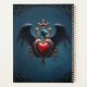Coeur gothique élégant avec oiseau imaginaire. Le coeur est décoré avec art avec des figuiers fleuris et des motifs floraux qui donnent au design une touche noble et sophistiquée. L'oiseau imaginaire qui entoure le coeur est dans les tons bleus cool et dégage une aura mystérieuse. Ses yeux rouges brillent comme des charbons brillants dans l'obscurité, lui donnant un charme étrange. La combinaison de l'élégant style gothique du coeur et la présence mystérieuse de l'oiseau d'imaginaire bleu crée un design fascinant et unique qui captive les spectateurs.