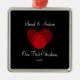 Notre premier ornement de Noël comporte un beau coeur rouge de thumbprint réglé sur un arrière - plan noir riche ! Personnalisez avec votre information et date et vous sont tous placent pour aller ! Cadeau daté merveilleux de souvenir pour votre premier Noël et une grande addition à vous collection d'ornement de Noël.