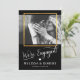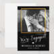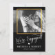 Élégantes, raffinées et modernes cartes de faire-part de mariage. Couleurs noir et blanc avec cadre en feuille d'or faux. Petit cœur. Lettres manuscrites en topographie script. Le RECTO de la carte comporte une photo/image et « NOUS SOMMES FIANCÉS » en lettres de topographie script. Parfait pour tout style de mariage, à tout moment de l'année. Invitations faciles à modifier - personnalisez avec votre texte. Voir la collection.