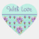 Cœur Pansy Flower Aqua Stripe floral Avec Sticker Amour