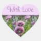 Cœur Pavot Fleur Purple Pink floral Avec Sticker D'Amou