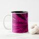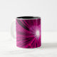 Design moderne avec un coeur rose et blanc brillant et brillant sur un arrière - plan rose, blanc et noir brillant. Mug avec un design personnalisable rose, noir et blanc pour vous permettre de personnaliser avec votre propre texte, images et idées. Créé par Jess Perry à l'aide de photographies originales et de techniques numériques.