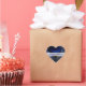 Habille tes enveloppes mariages et ajoute un peu de bling, avec ce grand autocollant. Sac autocollant en forme de coeur amusant qui ressemble à un vrai saphir. Une bande semi-transparente blanche et dorée, à travers le coeur, a un texte personnalisé bleu prêt à personnaliser. Jolie touche finale aux invitations et cartes de remerciements.