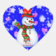 Joli bonhomme de neige, étoiles, coeurs et neige sur arrière - plan bleu. Personnalisez cet autocollant pour fermer les enveloppes de vos cadeaux de Noël, en changeant le texte, la police, la taille et la couleur.
