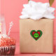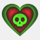 Ce design/graffix de coeur gothique présente un crâne vert mignon mais éffrayant, centré dans un coeur rouge rubis au centre d'un autocollant en forme de coeur noir. le design général est un riche contraste coloré avec les bords extérieurs foncés