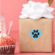 Sticker Coeur Empreinte de patte bleu avec nom. L'autocollant présente un empreinte de patte de chien noir portant un nom sur un arrière - plan bleu. Personnalisez le nom avec le vôtre.
