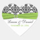 Ce autocollant et/ou sceau d'enveloppe en forme de coeur damassé vert noir, blanc et chartreuse correspond au faire-part de mariage ci-dessous. Vous pouvez modifier le texte pour dire ce que vous voulez, et vous pouvez également modifier la forme et la taille de l'autocollant. Si vous avez besoin d'autres articles correspondants dans cette conception, veuillez envoyer votre demande par courriel à niteowlstudio@gmail.com.