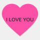 Autocollant en forme de coeur avec "I LOVE YOU" imprimé en caractères gras sur rose.