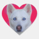 Cœur Sticker Husky Sibérien Blanc (arrière - plan Rose)