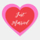 Just Married autocollant de coeur est montré dans une conception double coeur. Couleur rose et rouge
