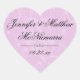 Un motif rose doux romantique crée un bel arrière - plan sur ce modèle autocollant mariage en forme de coeur. Les prénoms de mariée et de mariée et leur nom de famille sont écrits dans une écriture formelle et élégante. Une floraison noire classe sépare les noms de la date mariage, qui est écrite en chiffres. Vous pouvez facilement modifier le texte. En outre, vous pouvez modifier la police, la taille et la couleur du texte. Merveilleux pour un mariage formel rose et blanc. Utilisez-les sur les autocollants de faveur de mariage, les boîtes à gâteaux mariages et vos notes de remerciement.