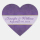 Ajoutez une touche de finition agréable à vos enveloppes de faire-part de mariage, avec cet autocollant de coeur élégant. Un beau violet foncé riche sur arrière - plan damassé violet, avec une bande semi-transparente blanche à tonalité dorée, à travers le coeur. Le texte personnalisé violet est prêt à être personnalisé. Idéal pour de nombreuses utilisations mariages.