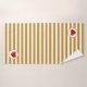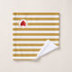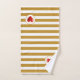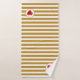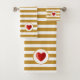 Élégante serviette sertie de beau coeur avec rayures dorées et blanches sur l'arrière - plan. Chic et moderne serviette de bain.