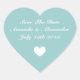 Coeur turquoise élégant Sauvez les autocollants de mariage date. Enregistrez les autocollants de mariage de date pour les invitations de mariage. Design turquoise et blanc classique. Texte typographique stylisé personnalisable et couleur arrière - plan élégante. Du coeur.