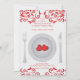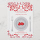Une belle invitation pour un dîner de Saint-Valentin. Le résumé tourbillonne frontière le dessus et le fond de la carte et d'une paire de rouge chauffe des repos au centre du plat. (Point de gel)