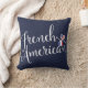 Les Coeurs Anglo-Américains Enmêlés Jettent Un Coussin. Que vous soyez d'origine française, française ou française, ou que vous et votre moitié soyez français et américains ! Il s'agit d'une police de caractères scénarisée, avec deux coeurs enchevêtrés avec des drapeaux américains et français, et le texte : French American.