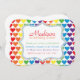 Cette Invitation Coeur est parfaite pour une fête arc-en-ciel ! Préparez-vous à fêter avec un pop de couleurs vives et amusant! Le design est composé d'un arrière - plan plein de coeurs de couleur arc-en-ciel pour une fête lumineuse et colorée.