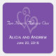 Deux Coeurs Deviennent un mariage Favor Stickers avec arrière - plan violet, deux coeurs mignons, un adage d'amour, et les noms de mariée et mariée personnalisés et la date mariage. Customisez avec votre jeu de couleurs et votre texte mariage. Ajoutez du texte si vous le souhaitez. D'autres conceptions sont disponibles sur whitewhimsicalweddings.com et whitewhimsicalweddings.blogspot.com