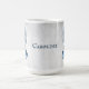 Profitez de votre café du matin avec une tasse de café personnalisée Blue Hearts. Le design de la moquette comprend une paire de coeurs, une vigne feuillue blanche molle contre un arrière - plan gris clair avec une zone à personnaliser avec votre nom. Autres cadeaux disponibles avec ce design ainsi qu'une variété de couleurs.