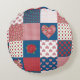 Un Coussin Rond chic ou Cushion, avec un faux patchwork de coeurs et de motifs de roses rouges. Faisant partie de la collection Posh & Painterly 'Coeurs & Roses, ce motif peut être ajusté pour s'adapter à n'importe quel Coussin ou coussin.