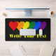 Tapis de bureau personnalisable avec design de coeurs dans les couleurs LGBT (lesbiennes, gays, bisexuels et transgenres) rainbow stripes drapeau de la fierté, arc-en-ciel design d'amour