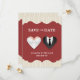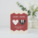 Annoncez votre mariage de manière originale et informelle avec cette carte d'annonce de sauvegarde de date drôle avec un couple de mariés en forme de cœur sur fond crème et rouge.