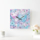 Belle Aqua rose Coeurs et Fleurs Horloge murale